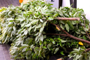 大きな枝から小さな枝を切り取るお仕事に、それらの枝をコンテナに集めるお仕事。
